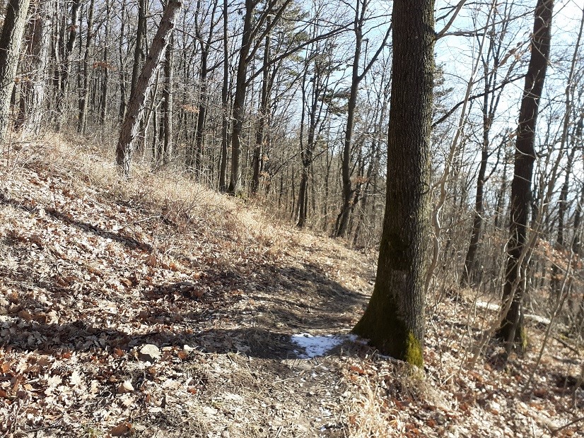 A Feketehegyről meredekebben kellett leereszkedni Kesztölcre. Ezen a túrán itt megcsúsztam, ami után kissé lidércessé volt a további túrám; de ez „magánügy”.