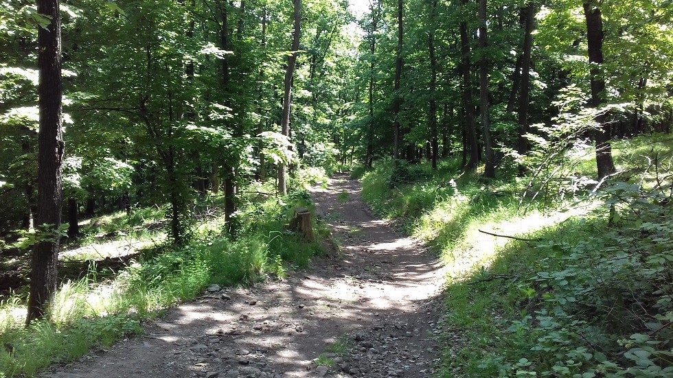 A Kis-Strázsahegyről a Kis- és Nagy-Strázsahegy között folytattuk az utunk Kesztölc felé.